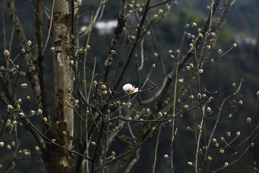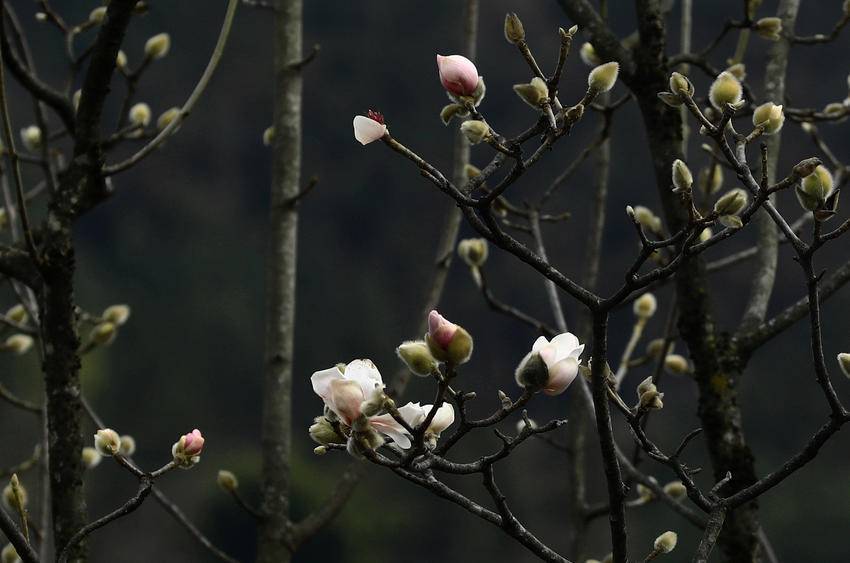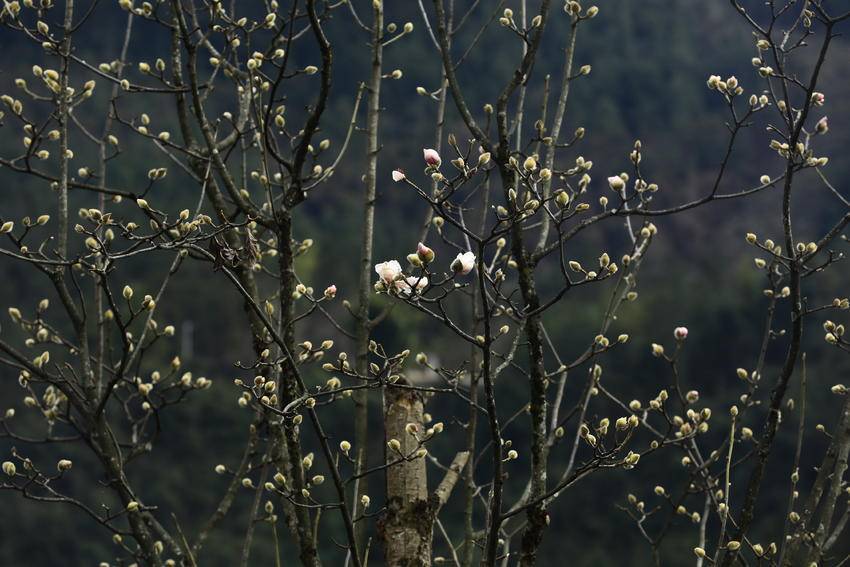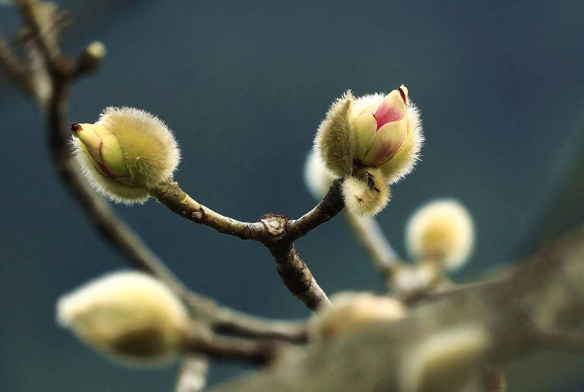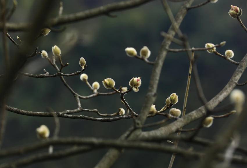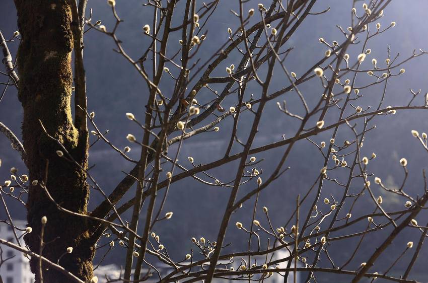 1月8日,天气连日晴好,鹤峰县容美镇麂子峡公园里高大的玉兰树上,万千毛茸茸的花骨朵儿,大都羞涩地眯着眼睛,躺在大树母亲的怀抱里积蓄力量。